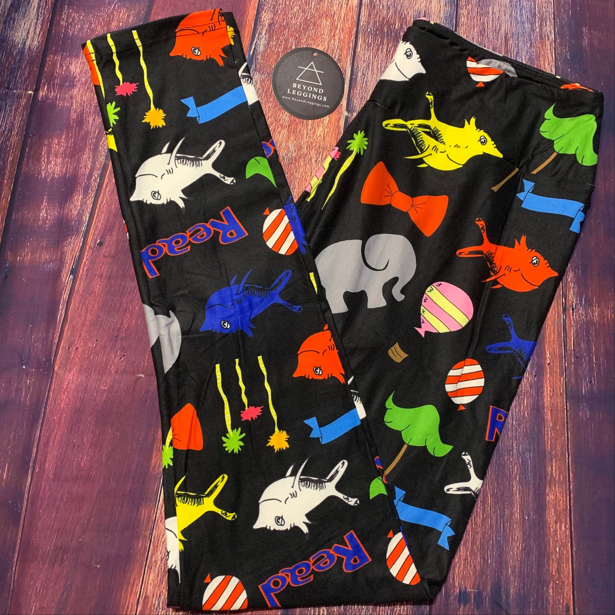 Red Fish Blue Fish Print Soft Leggings with Secret Pocket in Yoga Band