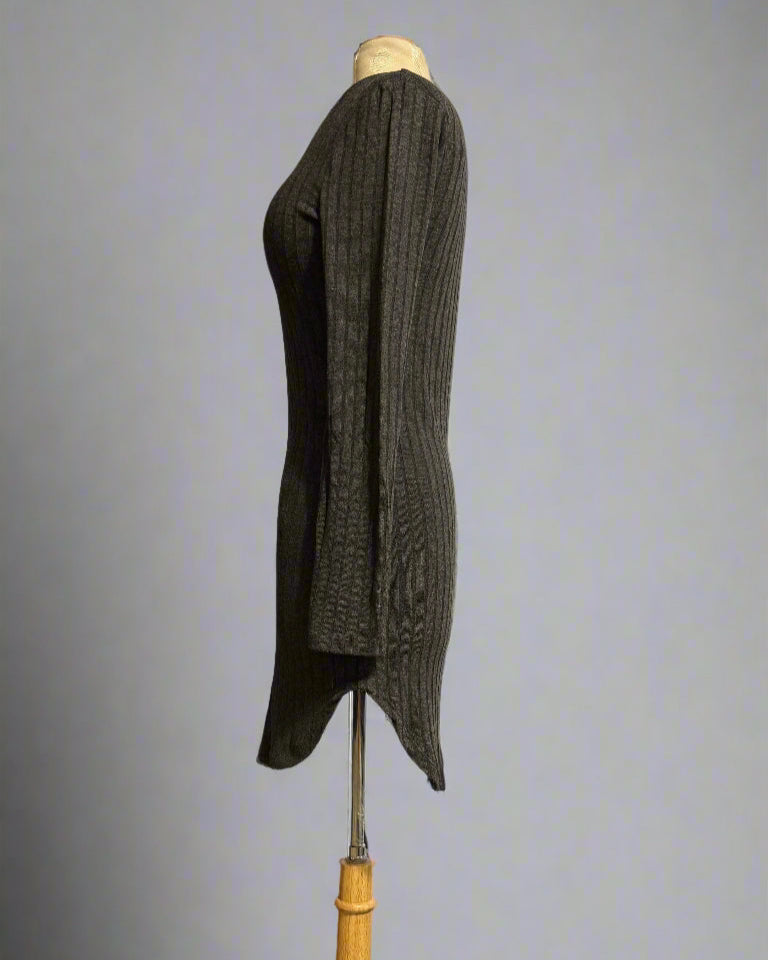 RAYON RIBBED LONG SLEEVE DOLPHIN HEM BODYCON DRESS