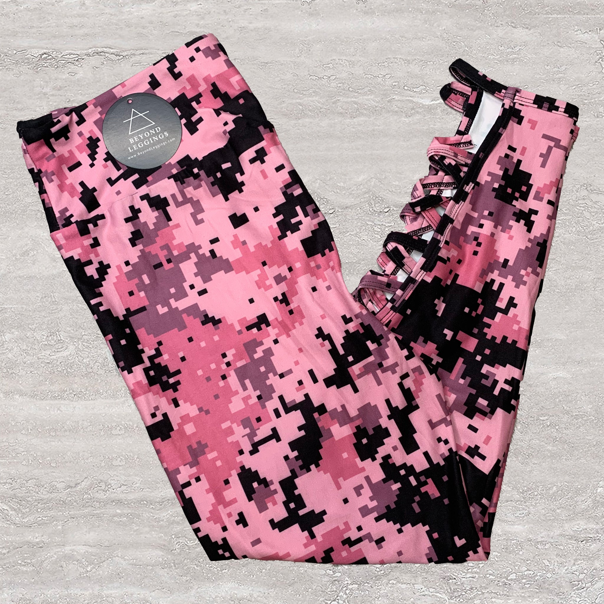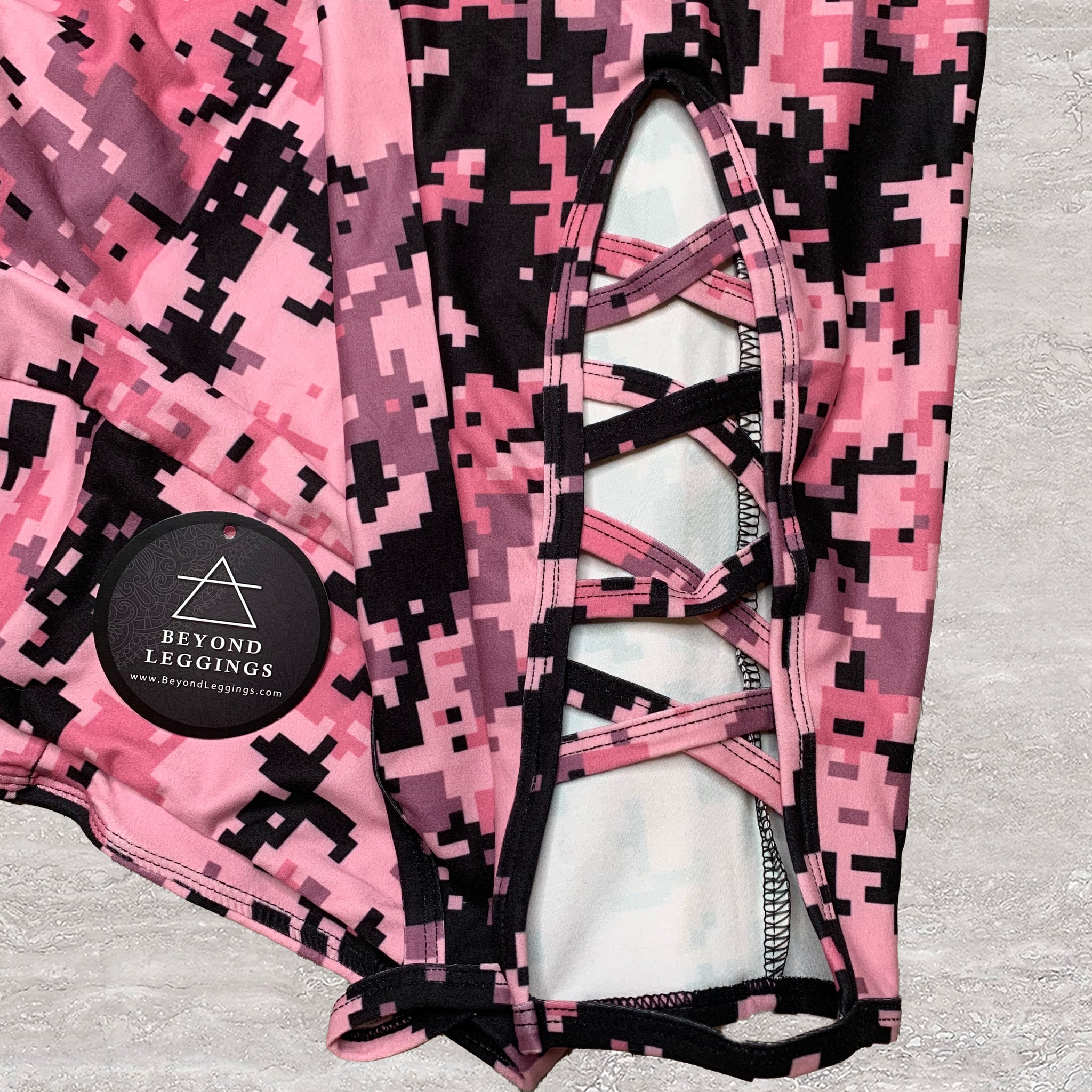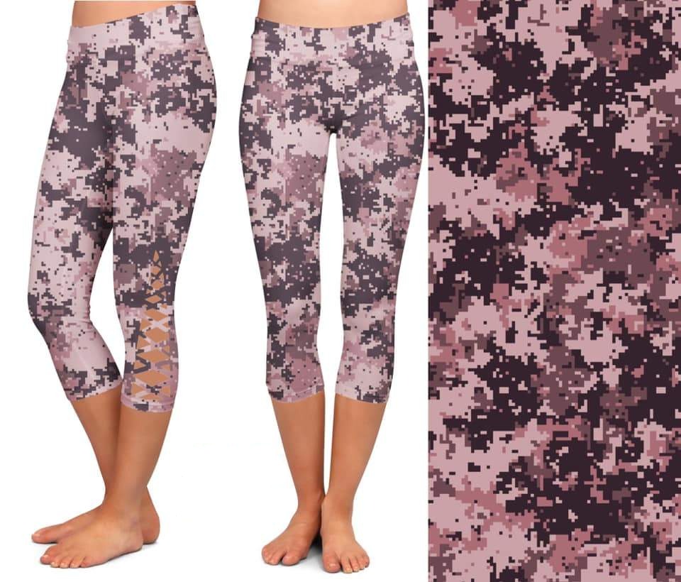 Rose Camo Side Criss Cross Cutout Capri Soft Leggings