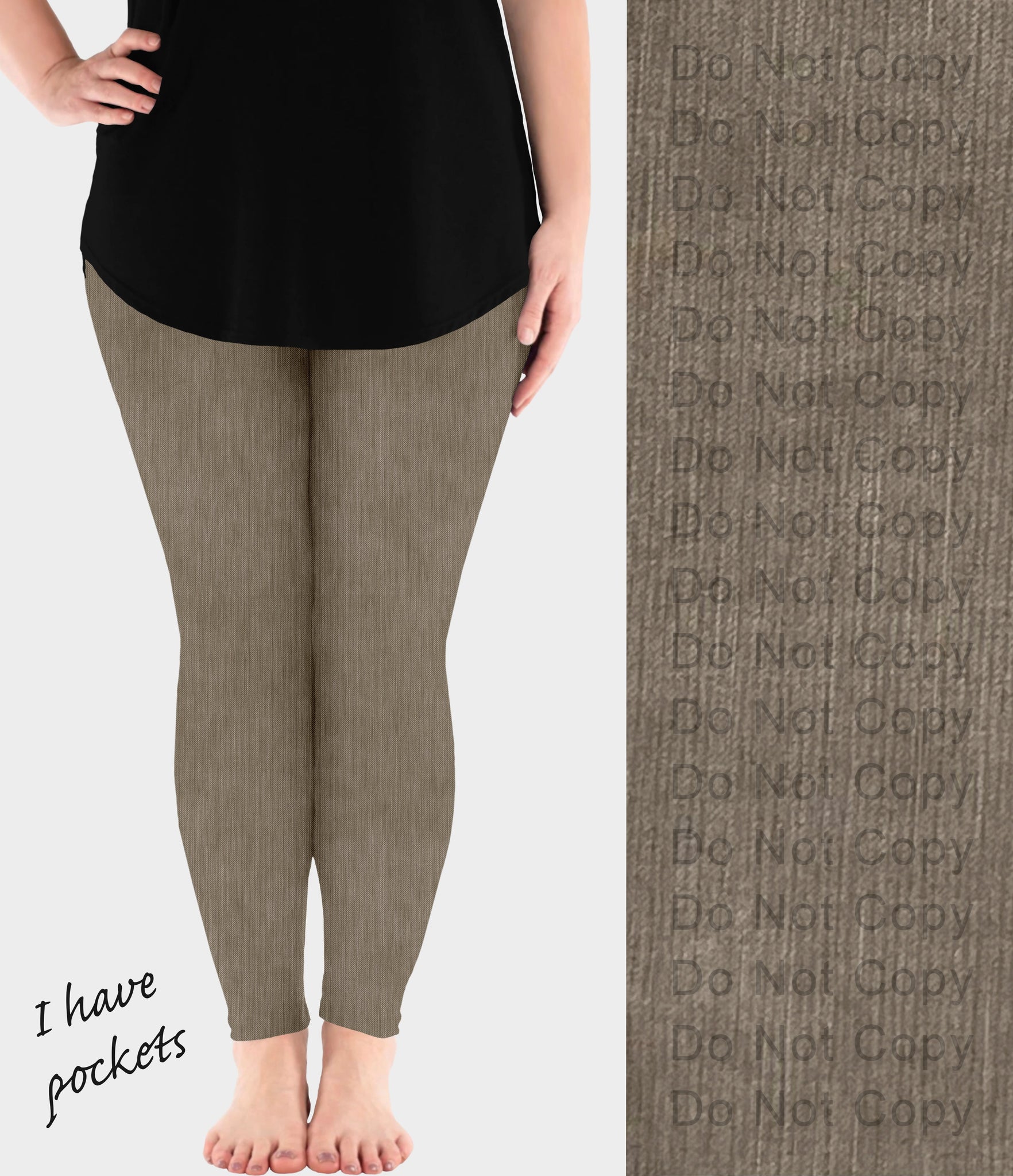 RTS - Mocha Faux Denim Leggings w/ Pockets