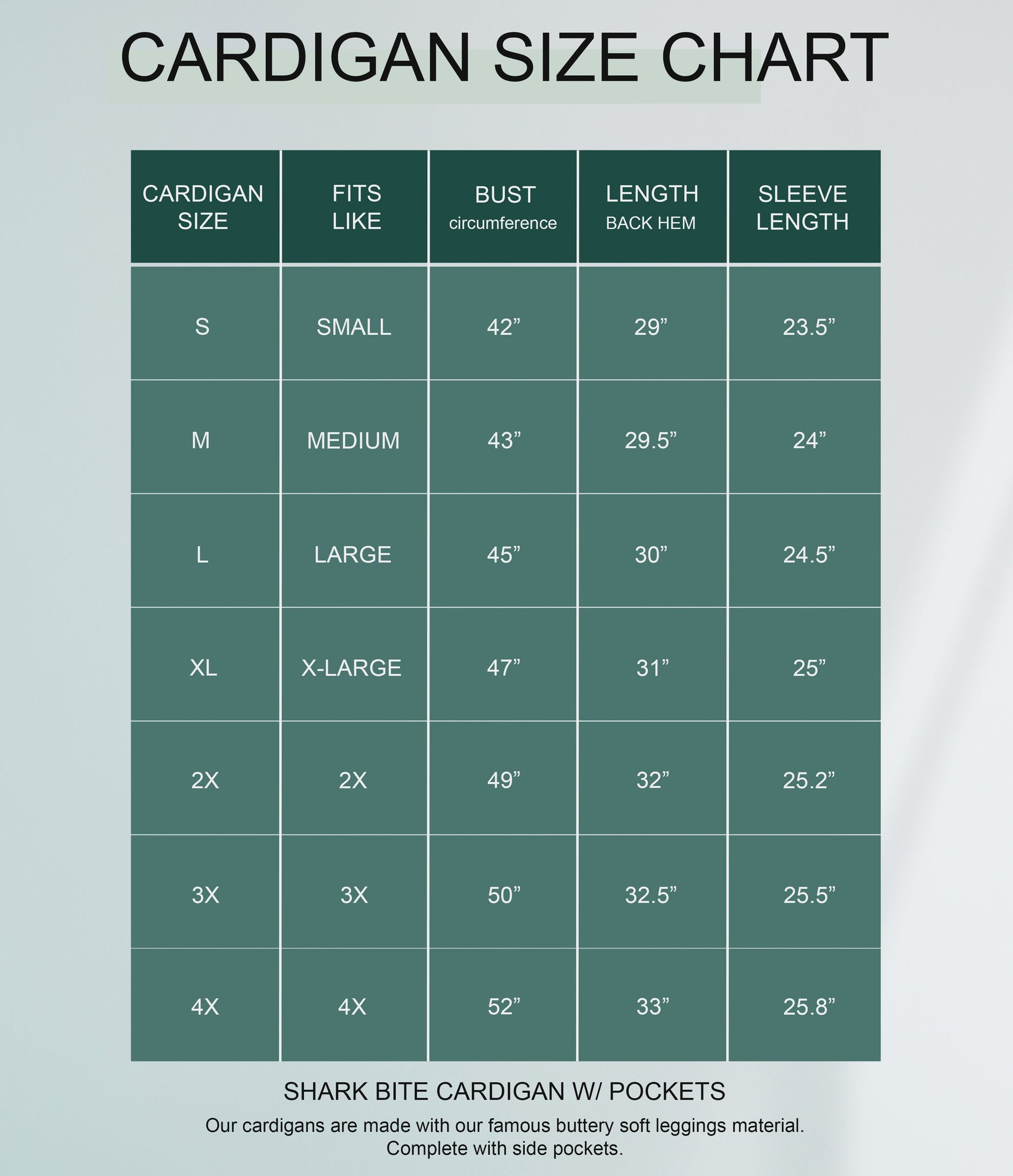 With side pockets and the buttery softness you love, this piece can take you anywhere. Our cardigans have a shark bite hem with a flowy open front design.