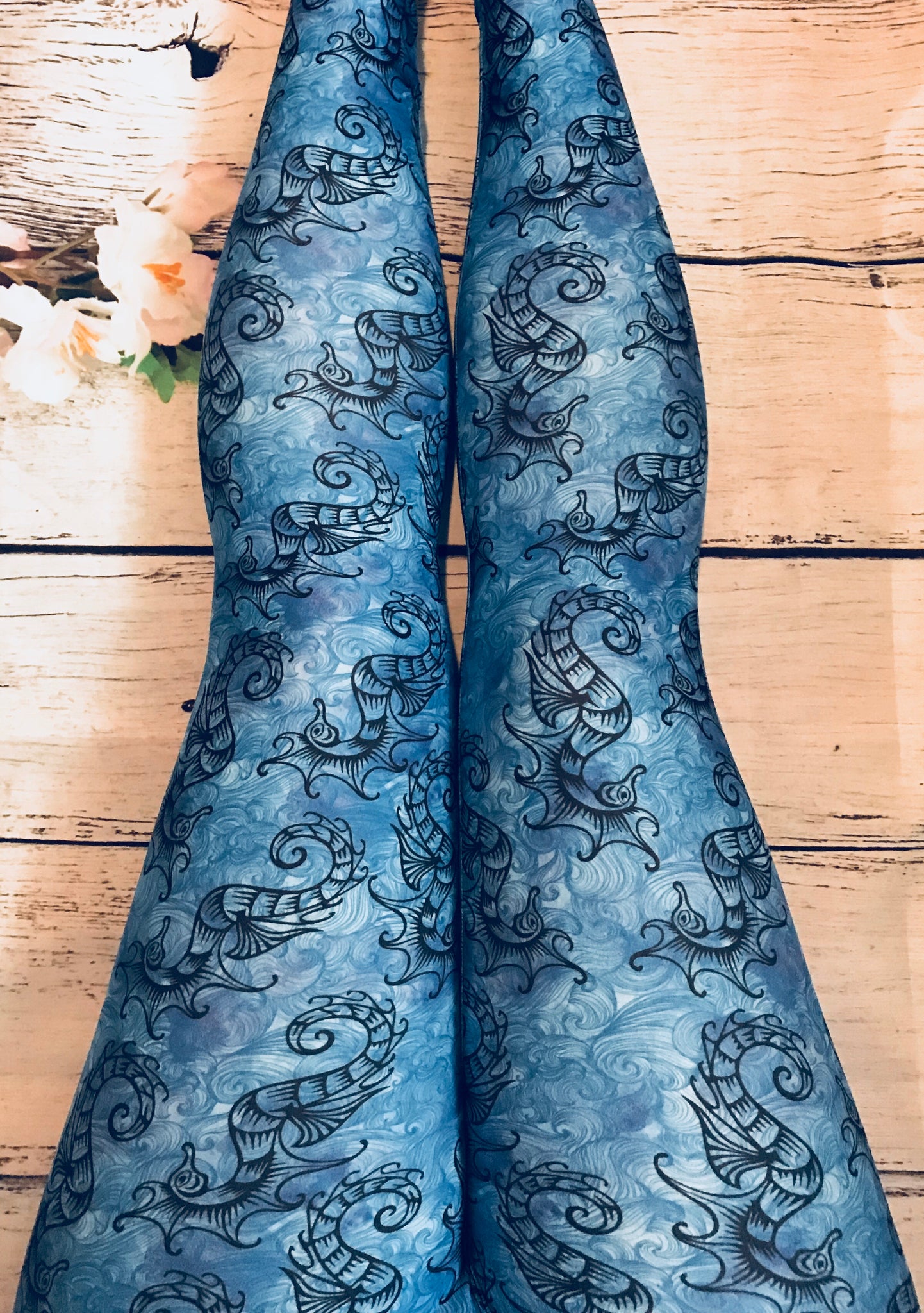 Seahorse Dragon Blue Ocean Wave Print Leggings