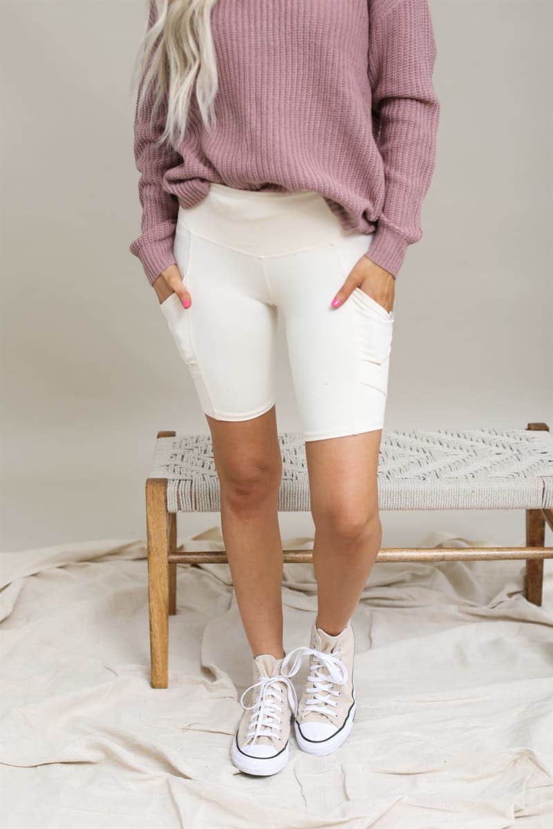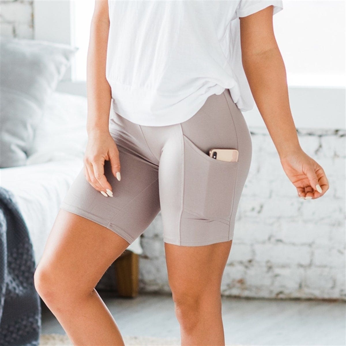 BRUSHED MICROFIBER WIDE WAISTBAND SHORT LEGGINGS WITH POCKETS - BUTTERY SOFT - PERFECT STRETCH & RECOVERY - HIGHER GSM TOTAL WAIST: 26", INSEAM: 8" approx. - MEASURED FROM SMALL * COLOR MAY VARY SLIGHTLY DUE TO MONITOR RESOLUTION