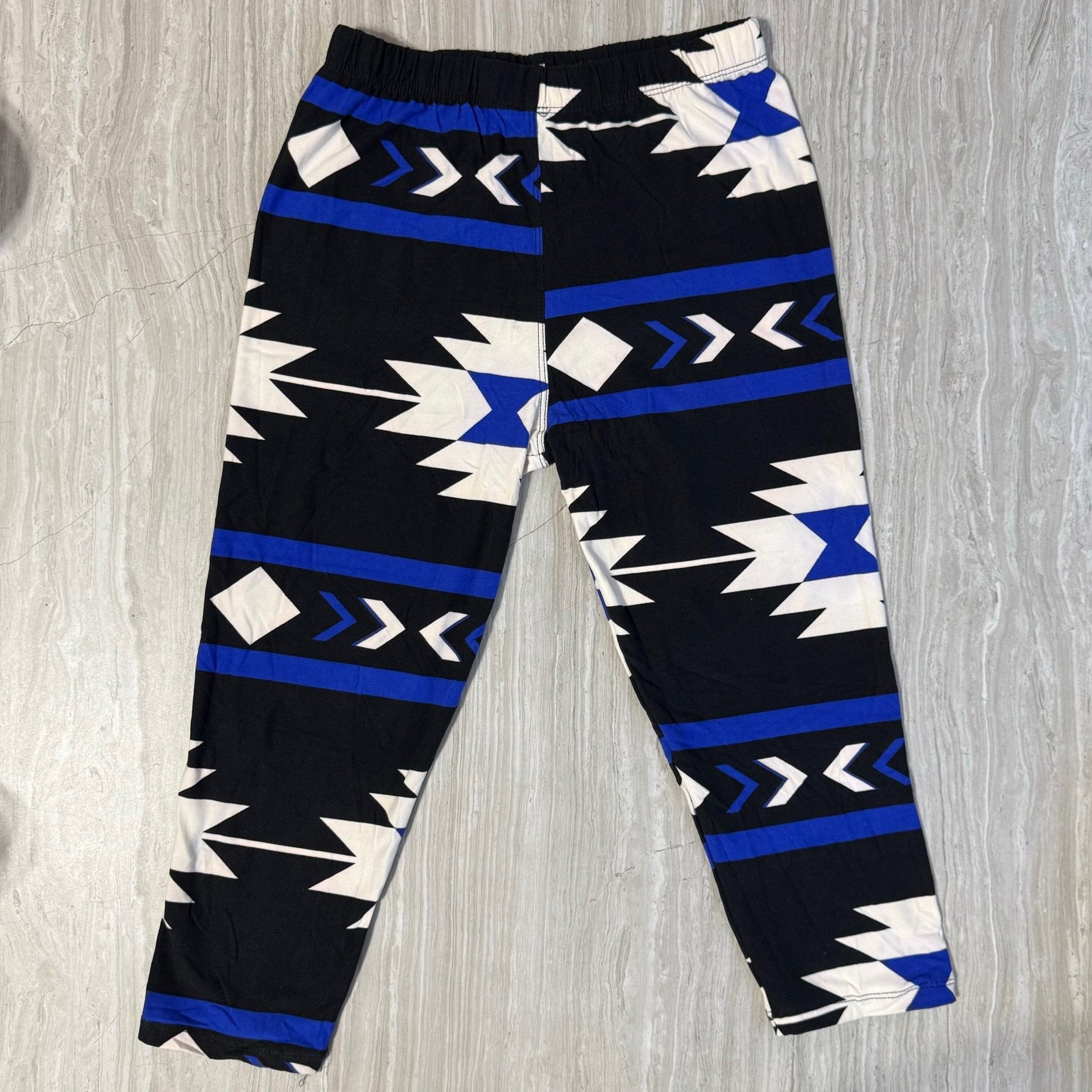 Southwestern Geometric Blue White Print Black Leggings