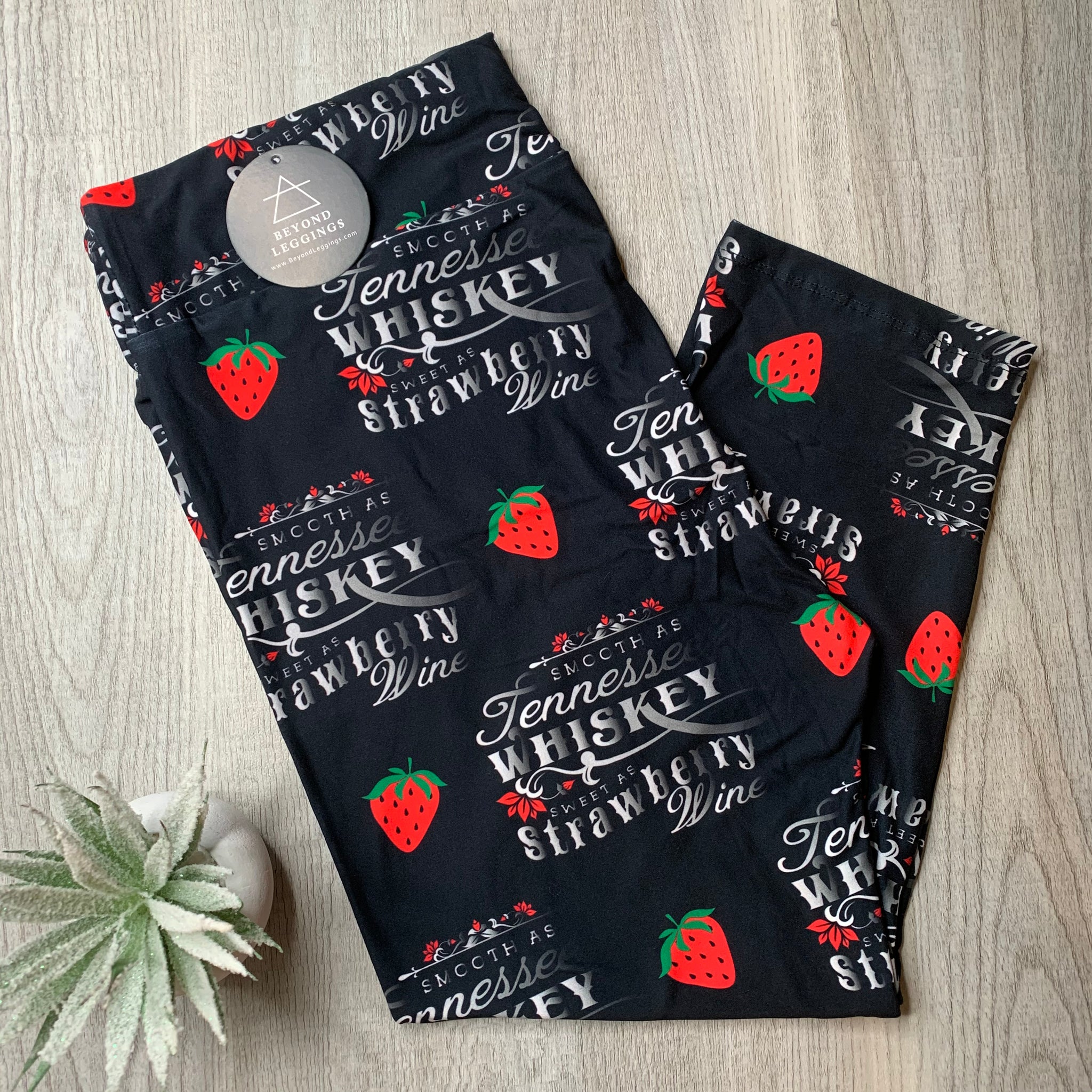 Strong Like Whiskey Sweet like Strawberry Wine Print Capri Black Leggings