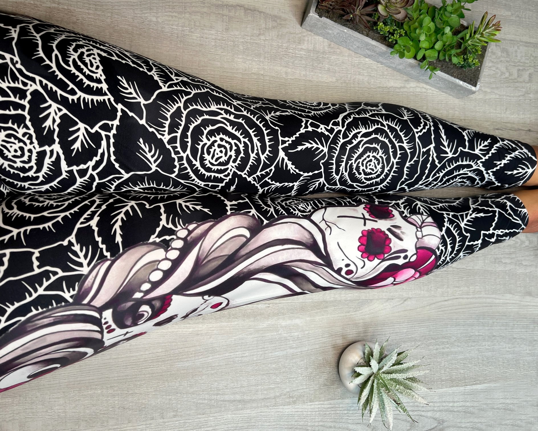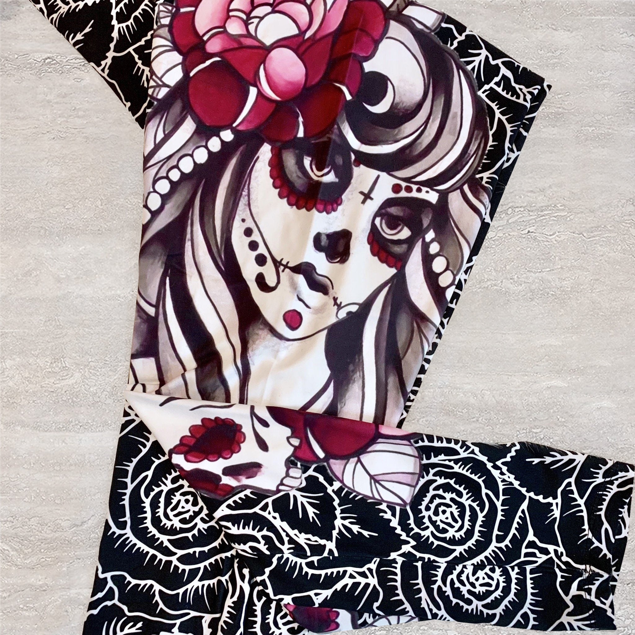 Undead Queen of Roses Sugar Skull Print Soft Leggings