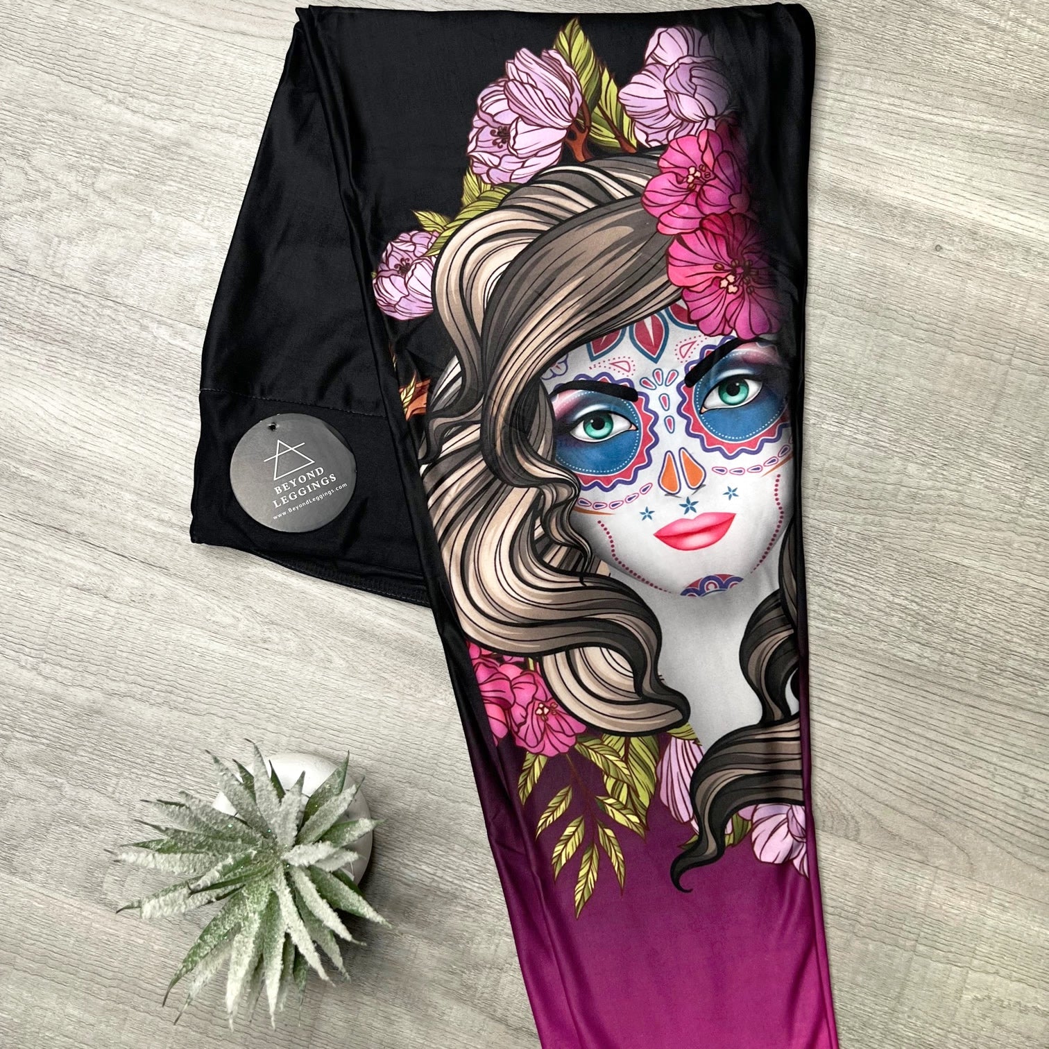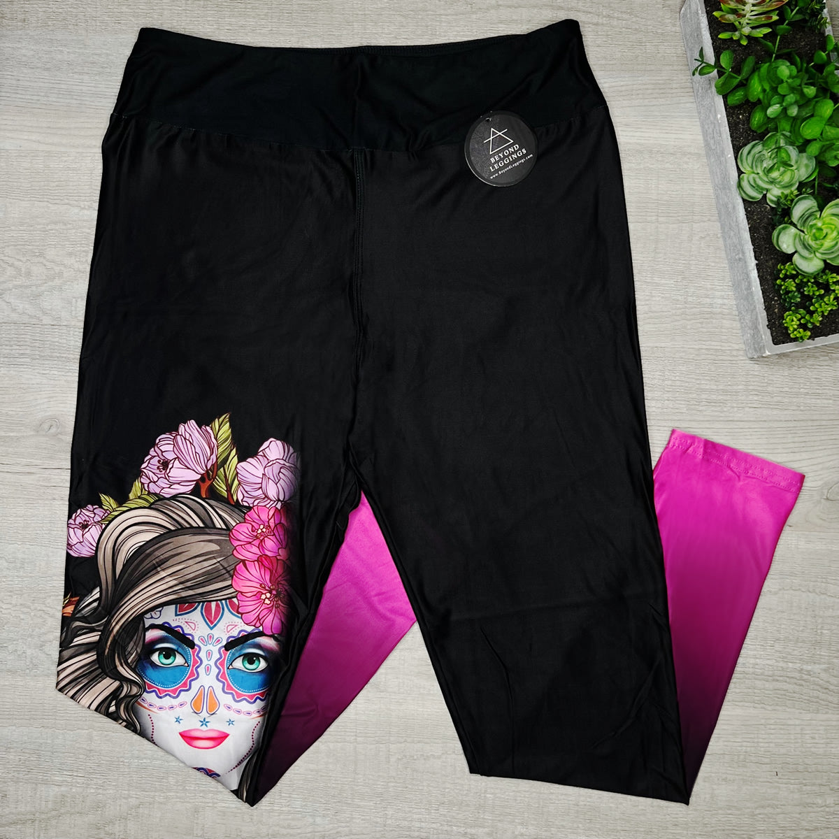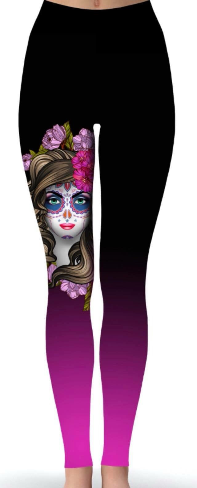 Sugar Skull Queen Print Ombre Magenta Pink Leggings