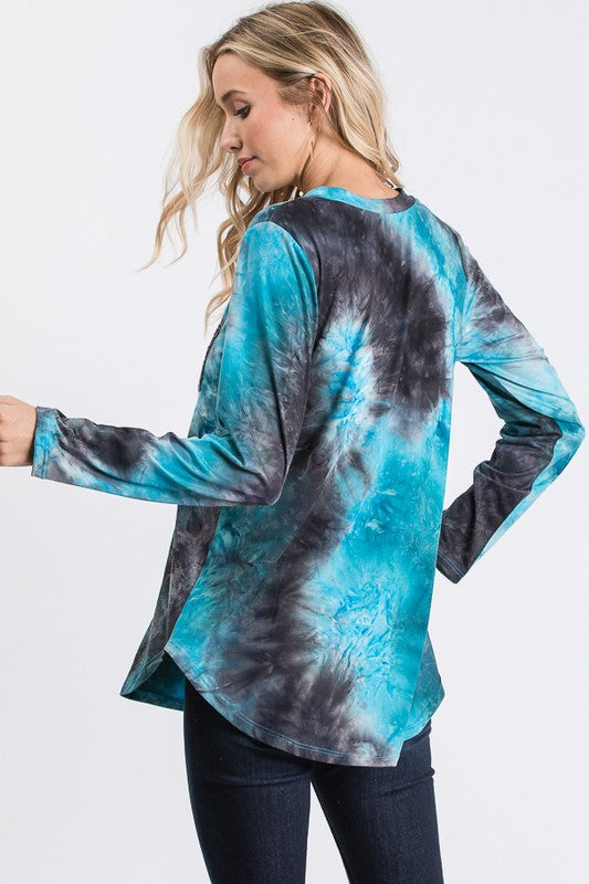 Teal Tie Dye Top with Sequin Pocket - Relaxed Fit and Legging-Soft Material