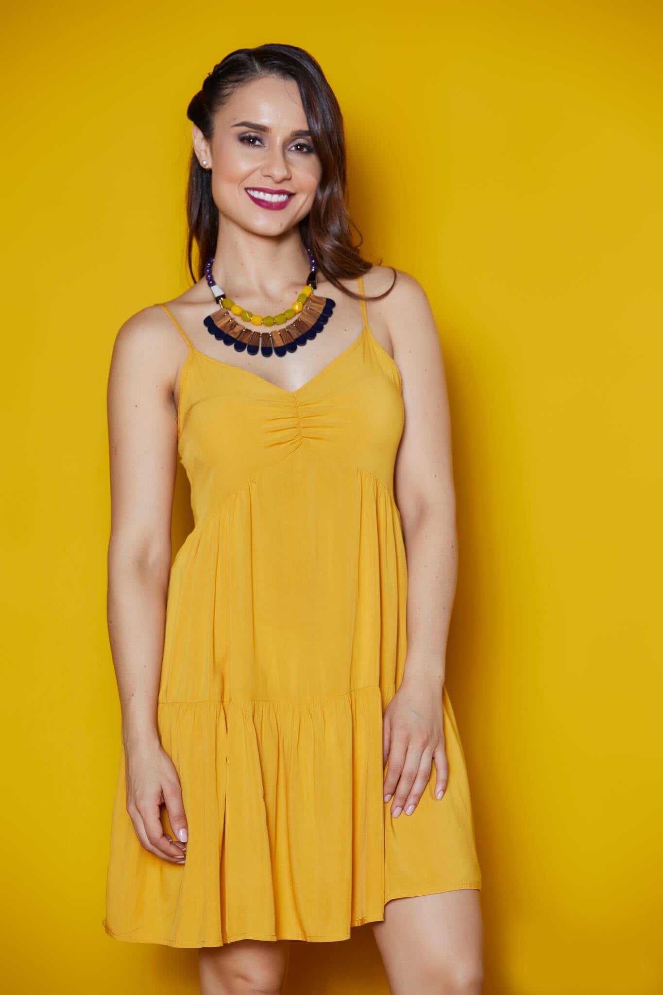 This charming, breezy dress features delicate rayon spaghetti straps and a flirty ruched bust. The sweet back corset lacing adds a fun, adjustable touch for a perfect fit every time.