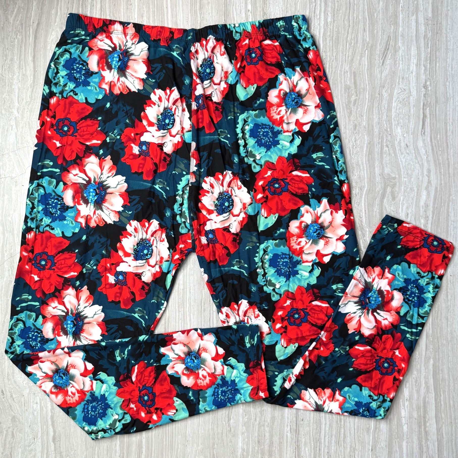 Turquoise Blue & Red Blossom Print Soft Leggings
