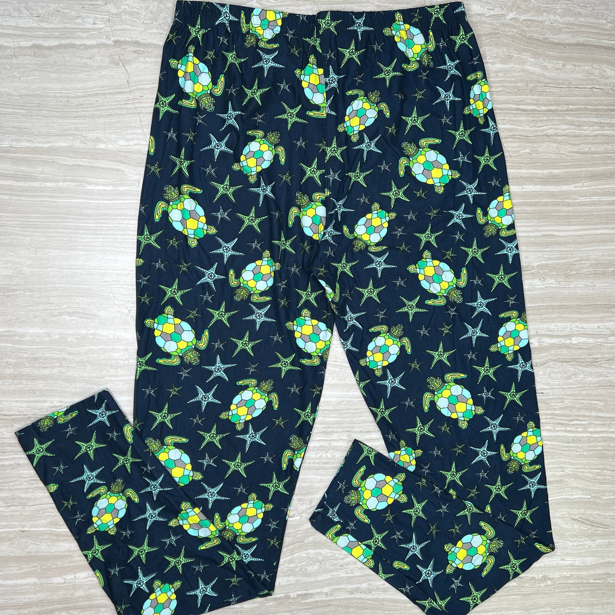 Turtle & Starfish Print Navy Blue Soft Stretchy Leggings