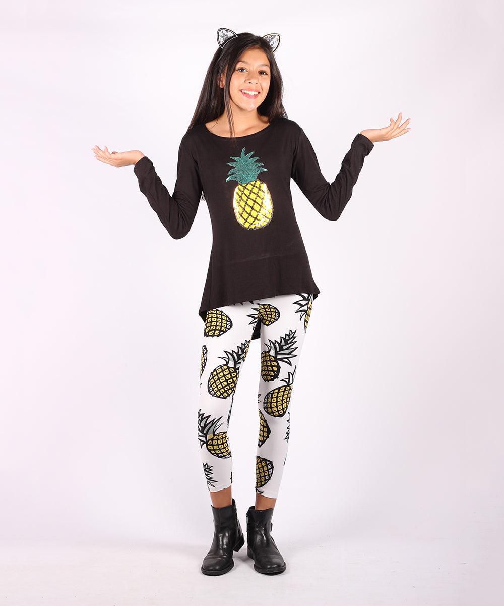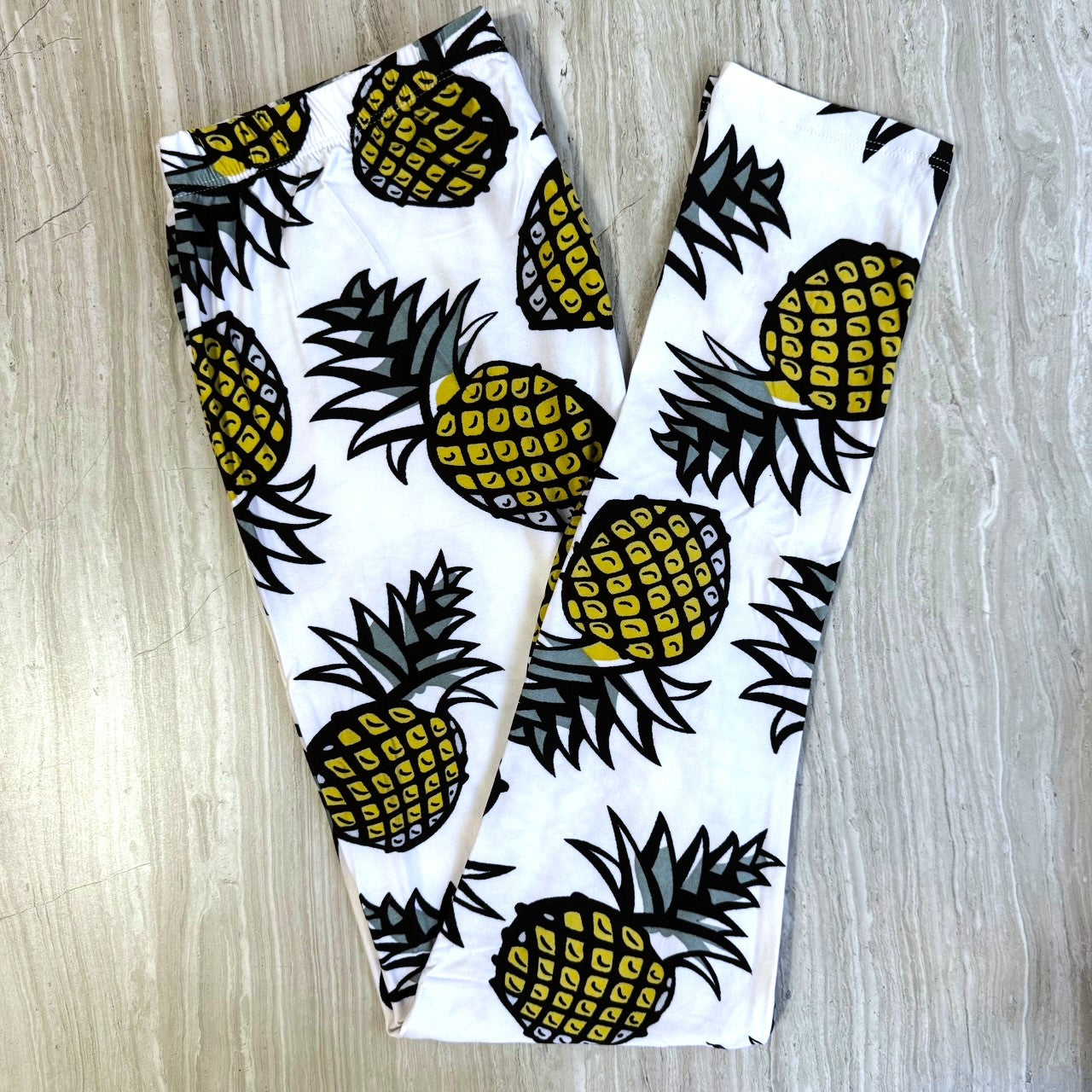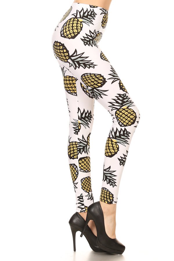 Yellow & White Pineapple Print Leggings - Adult & Kids