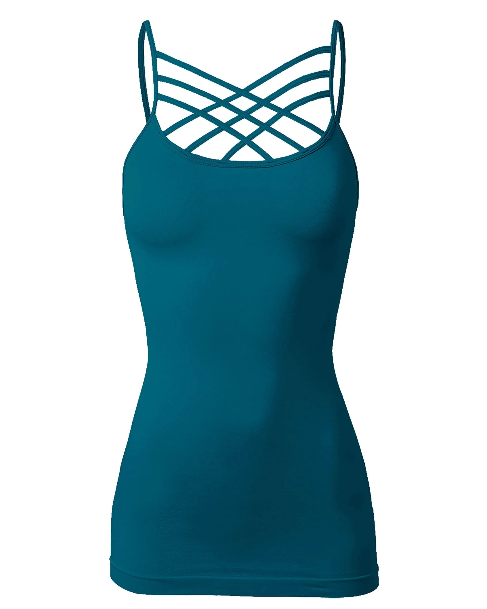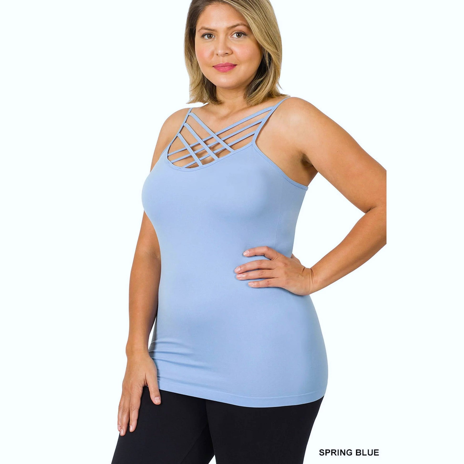 Our Criss Cross Cage Cami is the perfect piece that is sure to add tons of versatility to your collection! Wear this tank with your favorite jeans and baseball cap for a casual look! Also, try layering this tank with cardigans and jackets for the perfect spring look! Also try stack layering the camis for a unique look.