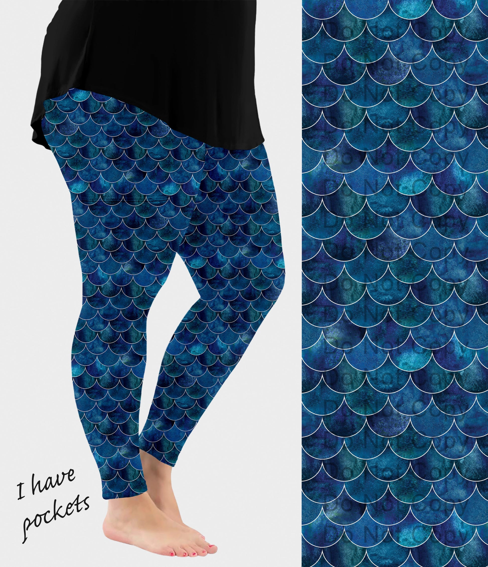RTS - Dark Blue Mermaid Scales Leggings w/ Pockets