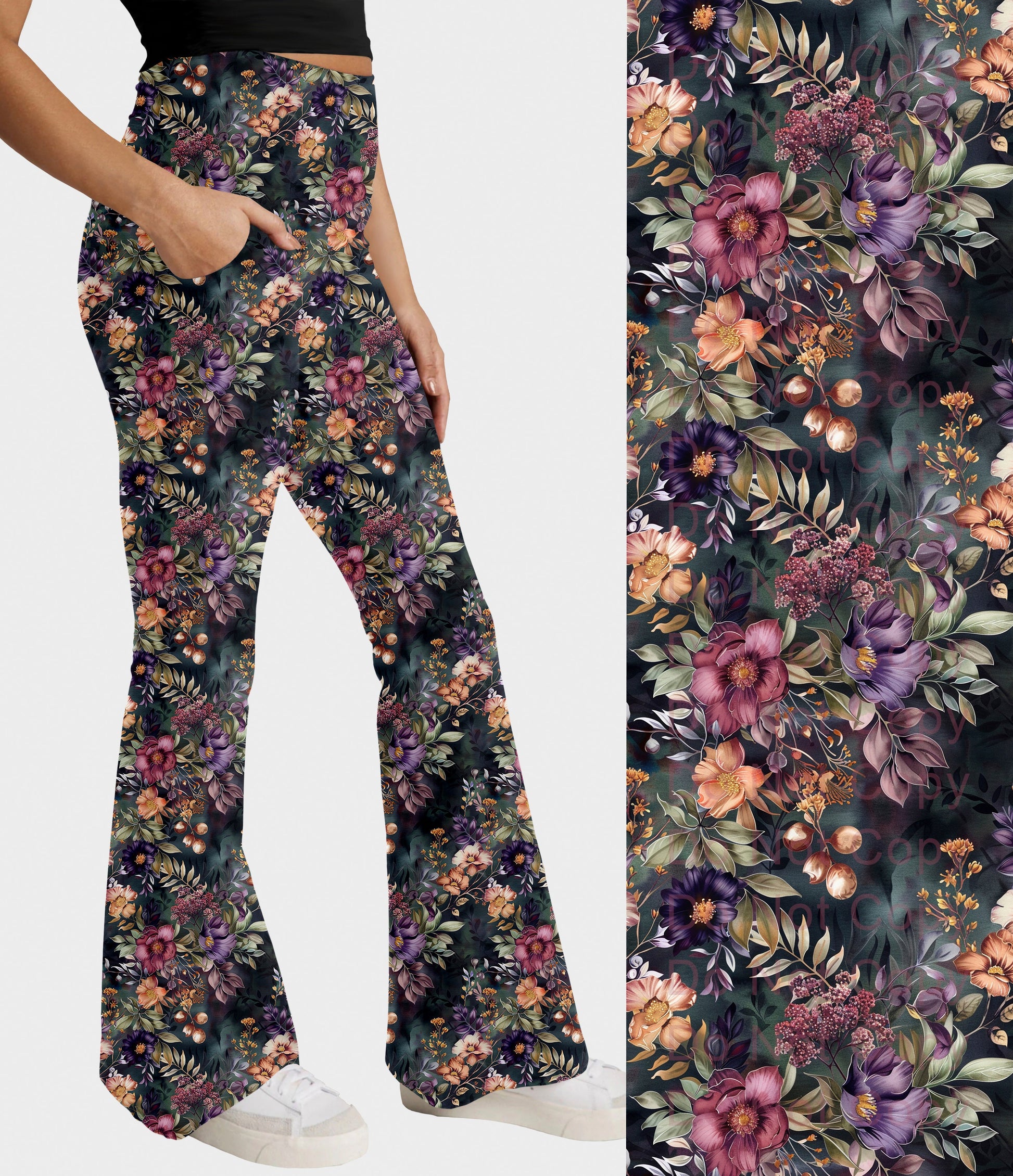 RTS - Fantasy Blooms Flare Leggings w/ Pockets