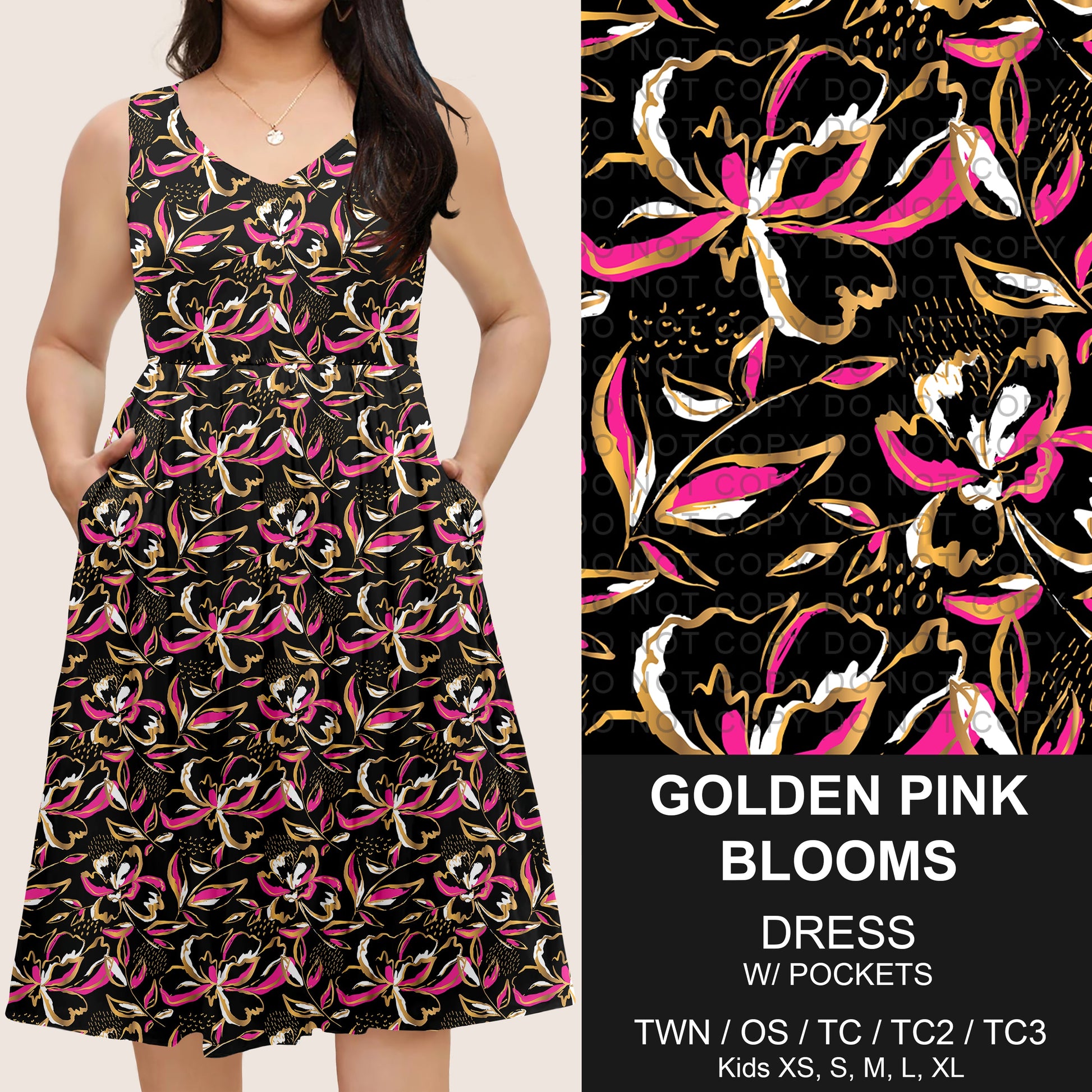 B275 - Preorder Golden Pink Blooms Sleeveless Pocket Dress (Closes 2/25. ETA: early May)