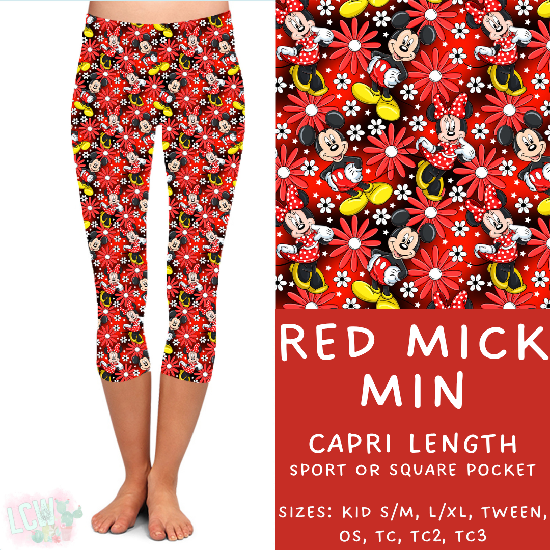 Ready to Ship - Red Mick Min Capri Length Leggings - OS Square Pocket