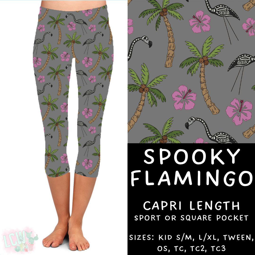 Ready to Ship - Spooky Flamingo Capri Length Leggings - TC2 Square Pocket