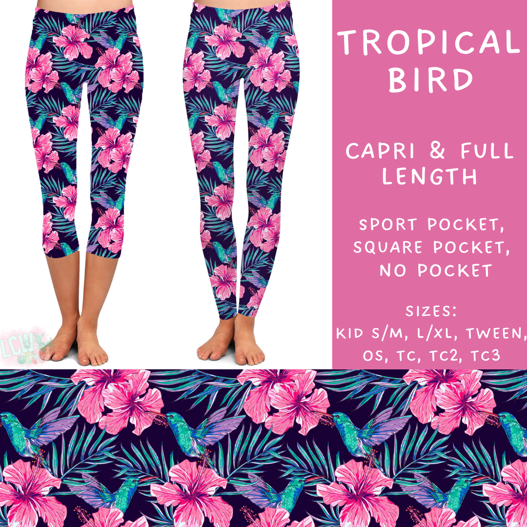 Ready To Ship - Tropical Bird Floral Full and Capri Length Leggings