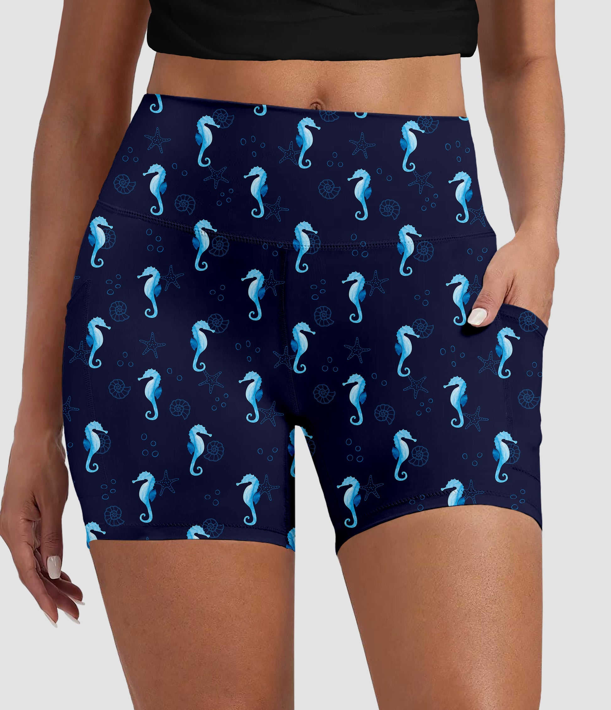 RTS - Blue Seahorse Biker Shorts w/ Pockets