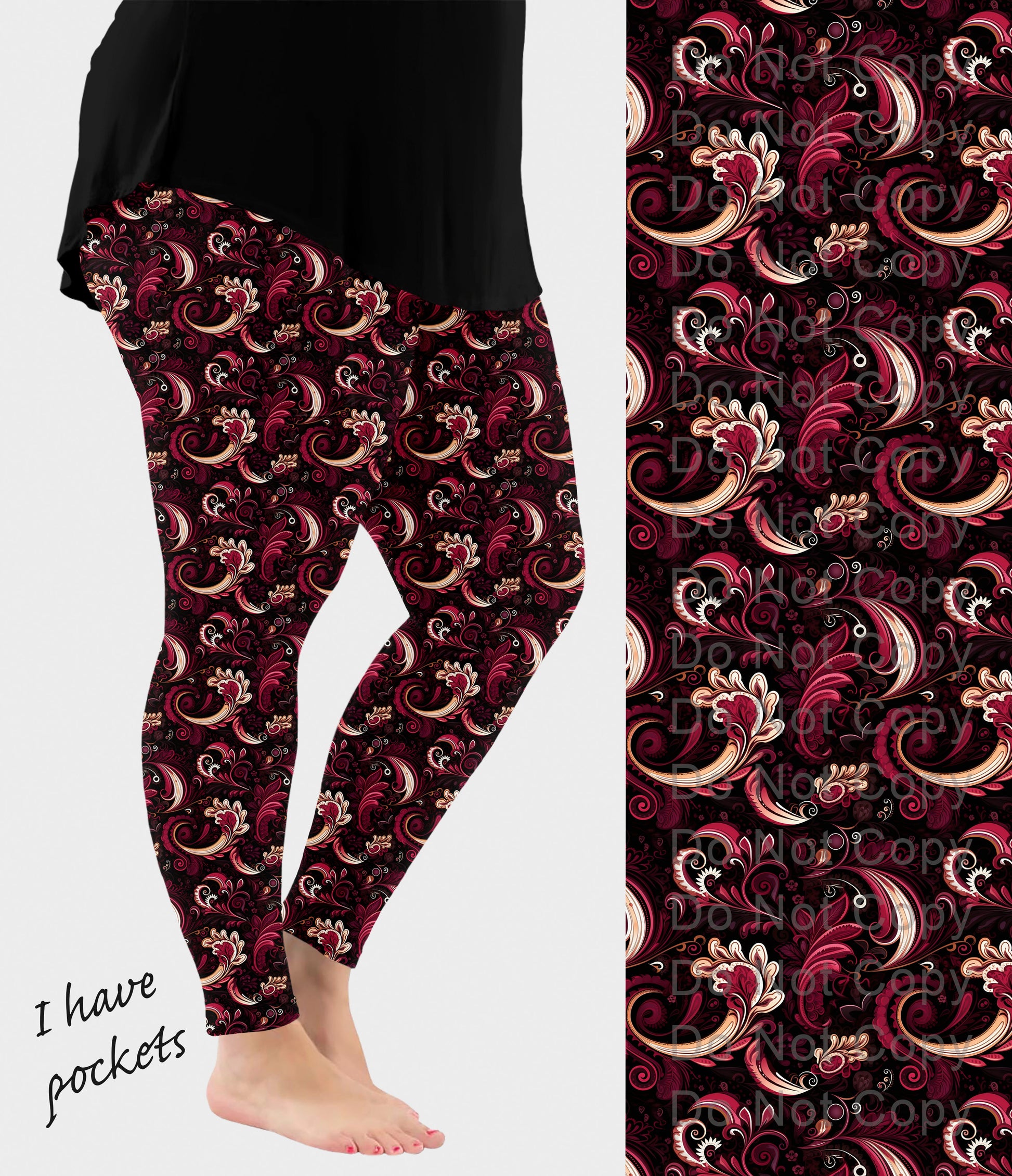 RTS - Burgundy Paisley Leggings w/ Pockets