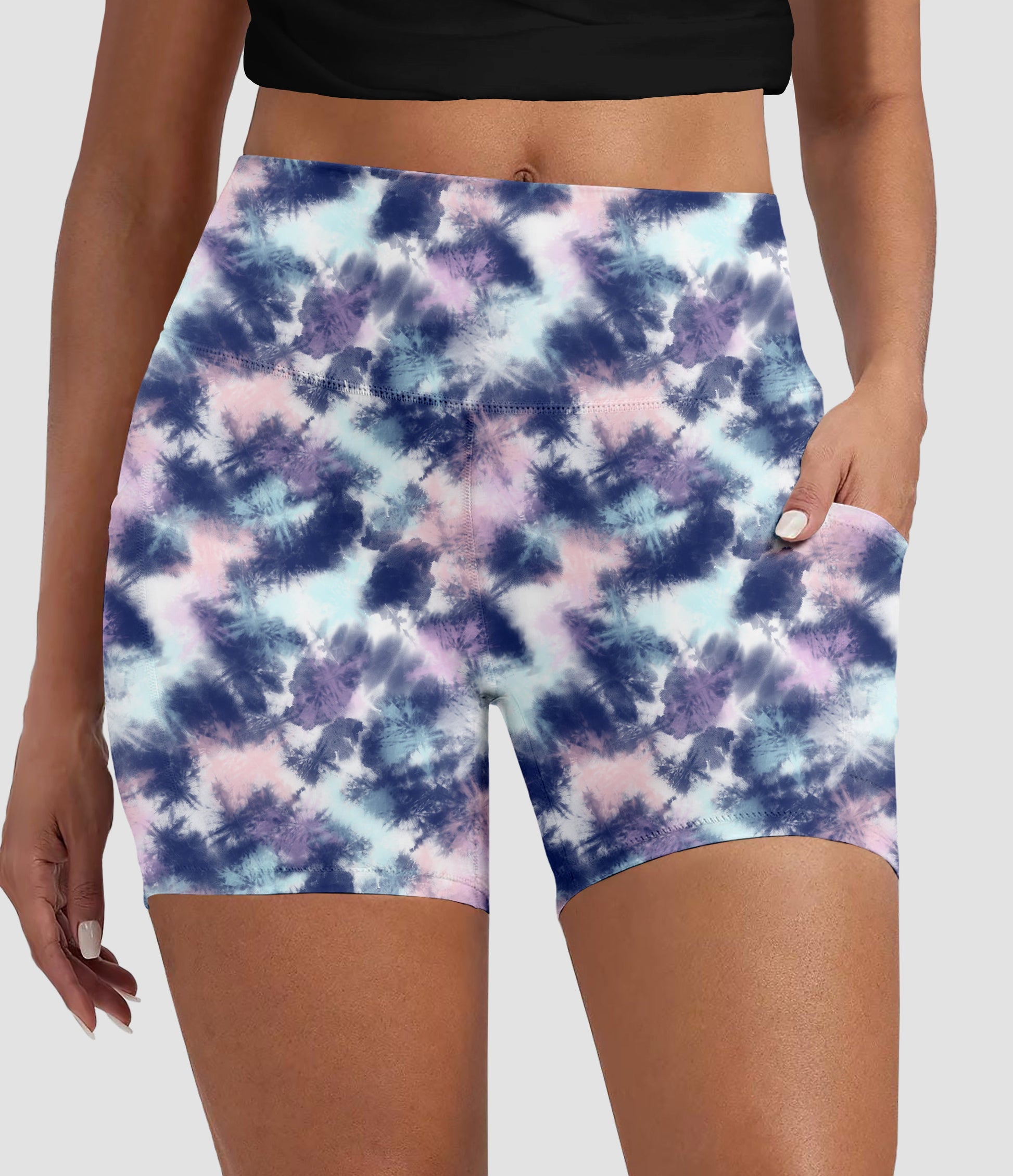 RTS - Navy Pink Tie Dye Biker Shorts w/ Pockets