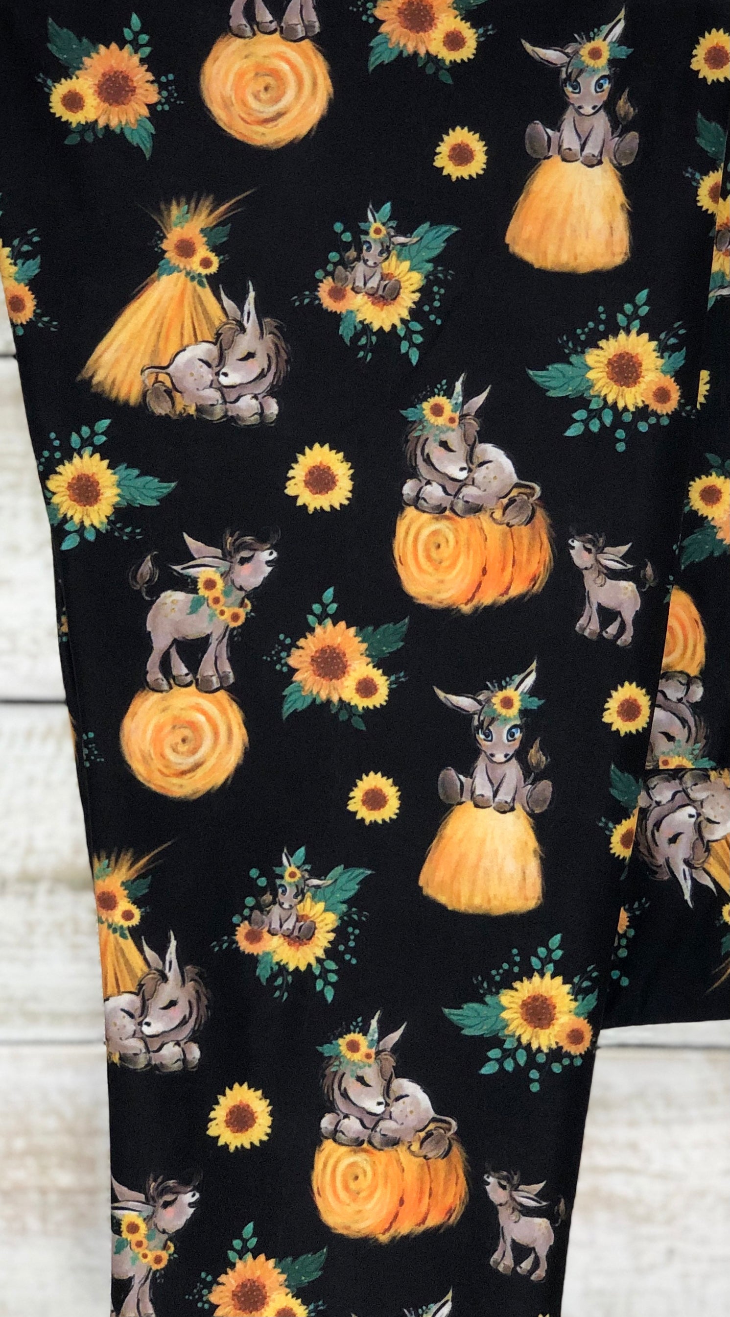 RTS - Sunflower Donkey Leggings w/ Inside Pockets