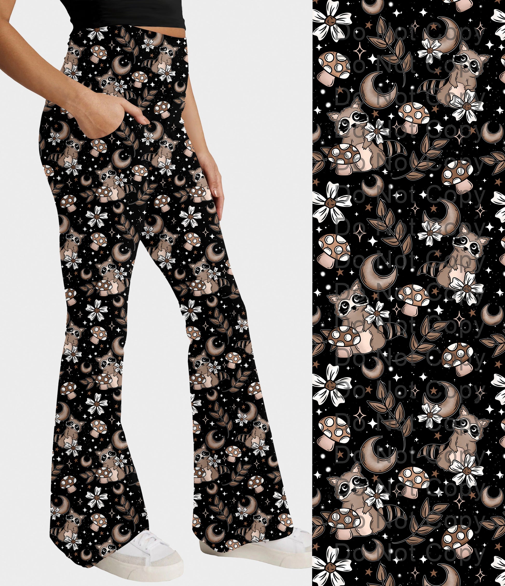 RTS - Woodland Raccoon Flare Leggings w/ Pockets