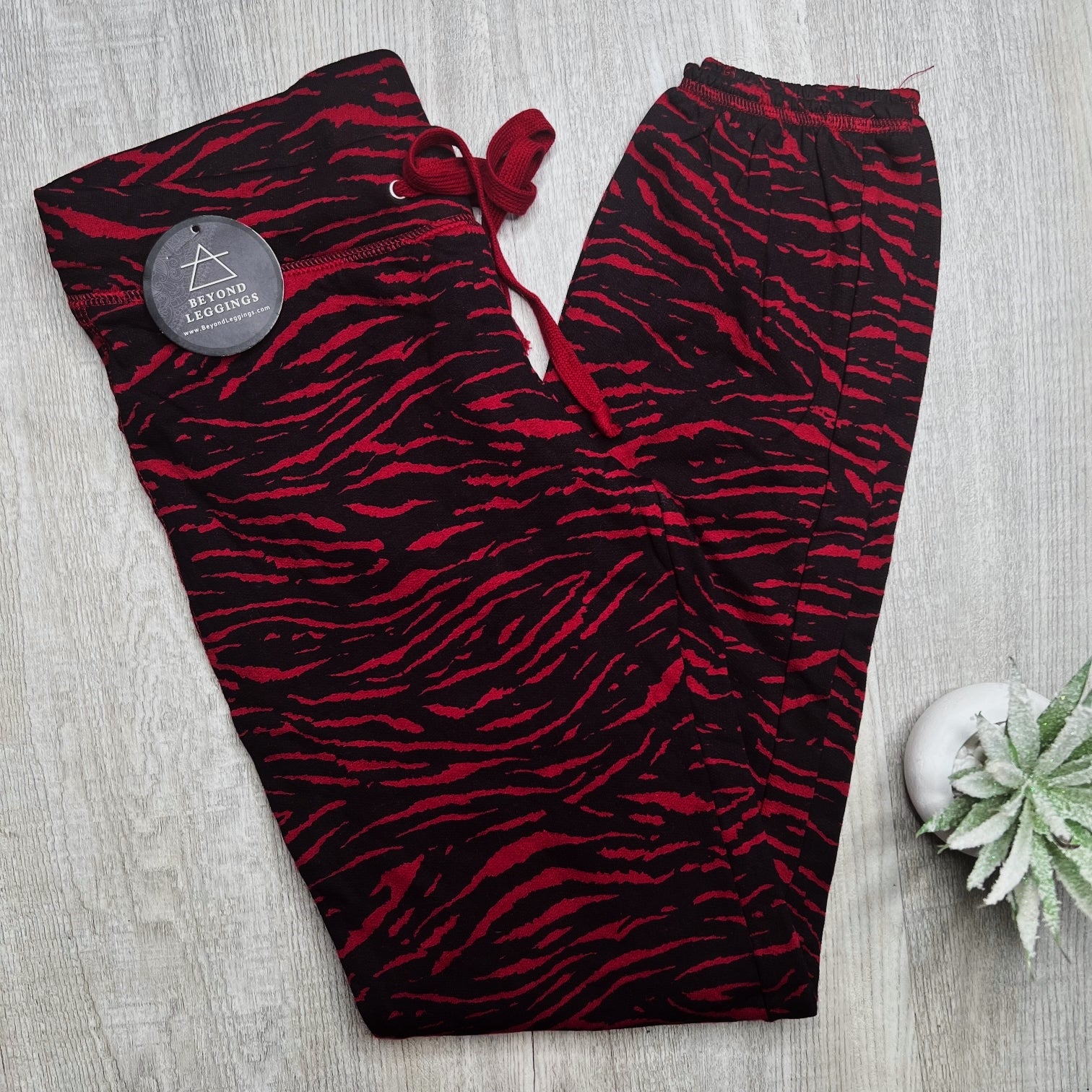 Zenana Woman’s Zebra Printed Red Fleece Pants.